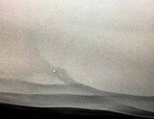 A more sensitive test is to x-ray the horse’s abdomen to look for sand accumulation in the lower part of the abdomen. This not only identifies sand, but also allows us to score the amount of sand present and ascribe it a risk factor for the development of issues. For example, if a large burden is seen, we can be more cautious with monitoring and treatment.